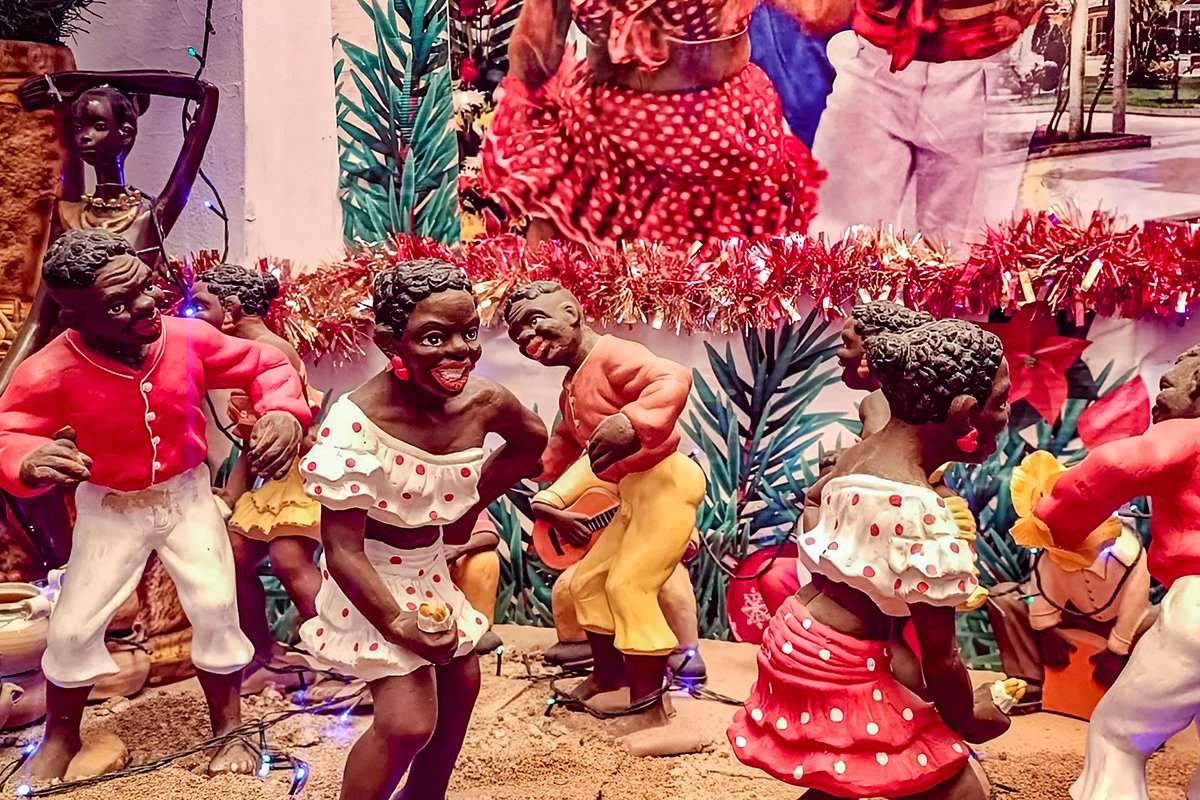 Además del tradicional pesebre, acompañan al nacimiento otras escenas como: la Navidad ayacuchana y la Navidad de los negritos. En ambos espacios se cuentan con delicadas artesanías que muestran tradiciones peruanas. En otro de los espacios se puede observar a un grupo de bailarines de marinera norteña que rinden homenaje al niño Jesús.