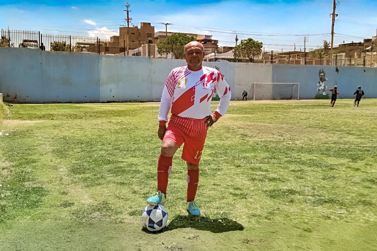 En sus años mozos fue un delantero velocísimo y con gran habilidad con la pelota en los pies. Hoy, a sus 67 años de edad, lleva una misma rutina: juega al fútbol una vez por semana.