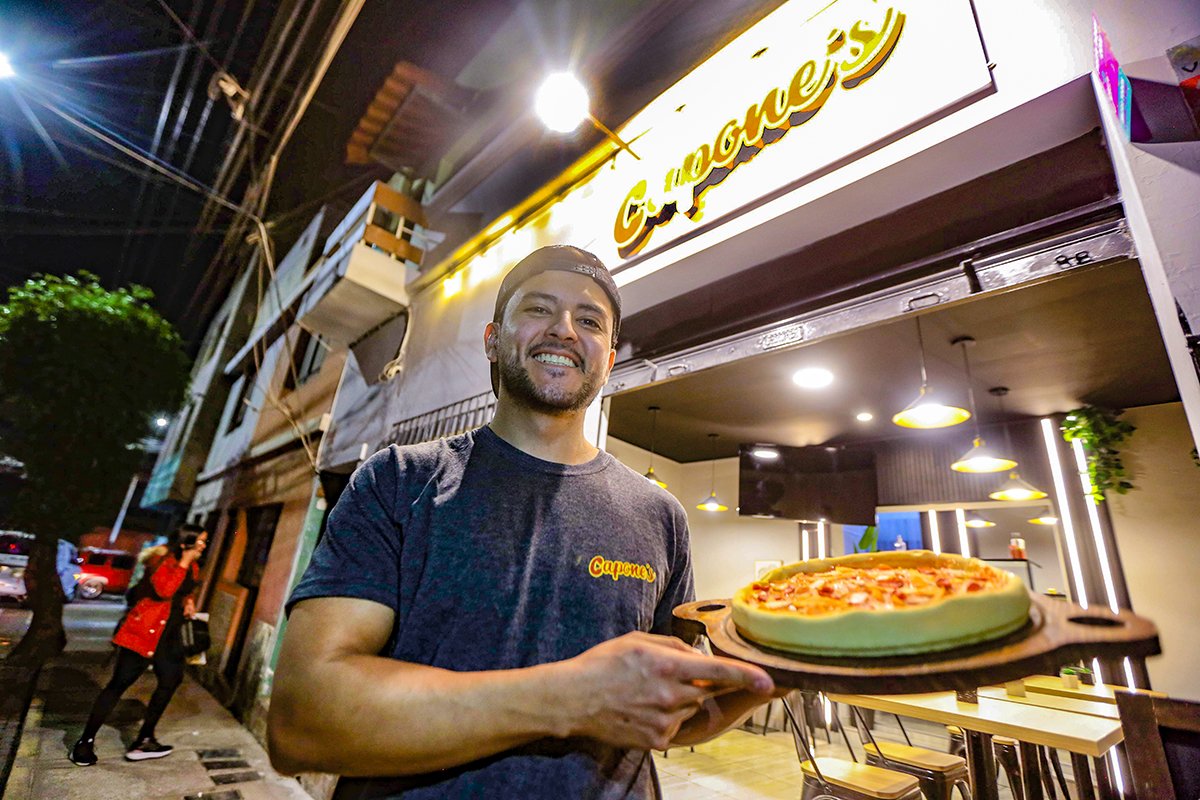 La receta del éxito de este emprendimiento nació en una casa, en plena pandemia. Capone’s innovó en la preparación de pizzas. Su estilo rompe con la clásica presentación delgada para entregar un producto más jugoso y con mucho relleno.